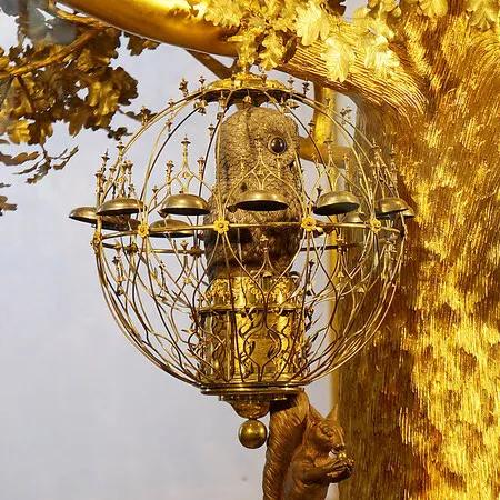 Часы изготовлены в Лондоне в 1770-е годы. Материал: бронза, серебро, стразы, золочение. Находятся в рабочем состоянии (их заводят каждую пятницу в 19:00). По утверждению специалистов Государственного Эрмитажа, это единственный в мире крупный автомат XVIII века, дошедший до нашего времени без изменений. Хранитель — Михаил Петрович Гурьев, заведующий Лабораторией часов и музыкальных механизмов Эрмитажа.