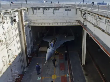 Для защиты персонала и оборудования от выхлопных струй реактивных двигателей в момент взлёта самолёта стартовые позиции оснащены сверхпрочными отклоняемыми щитами газоотбойников (дефлекторов газовых струй - ДГС). Гидравлические цилиндры поднимают каждый щит вверх под углом 45 градусов. Каждый газоотбойник имеет систему охлаждения проточной морской водой для предотвращения повреждений. После взлёта самолёта щиты убираются в палубу.