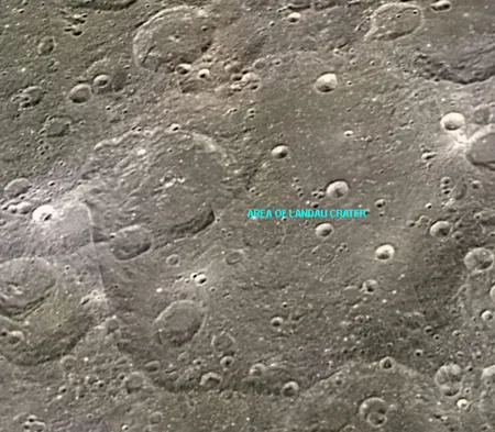 Большой ударный кратер в области восточного побережья Моря Изобилия на видимой стороне Луны.